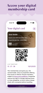 The app allows you to display your membership card details on your chosen mobile device. These details do not replace your physical membership card, and ‘digital cards’ may be used solely at the discretion of Historic Houses and participating member attractions.