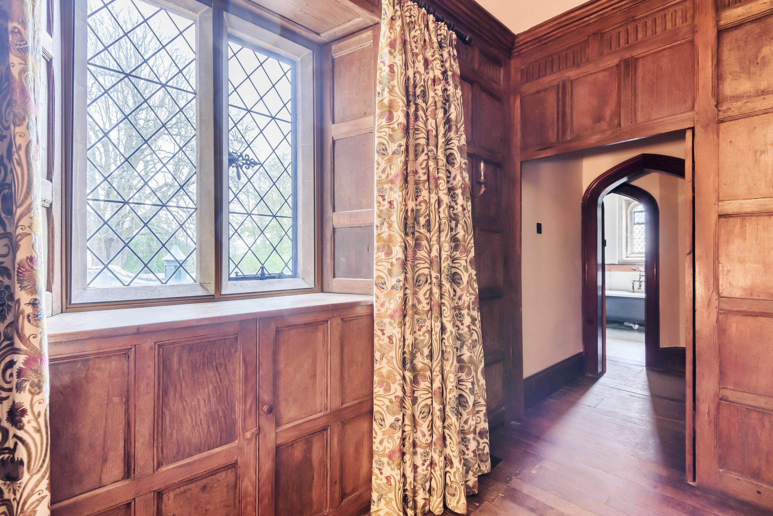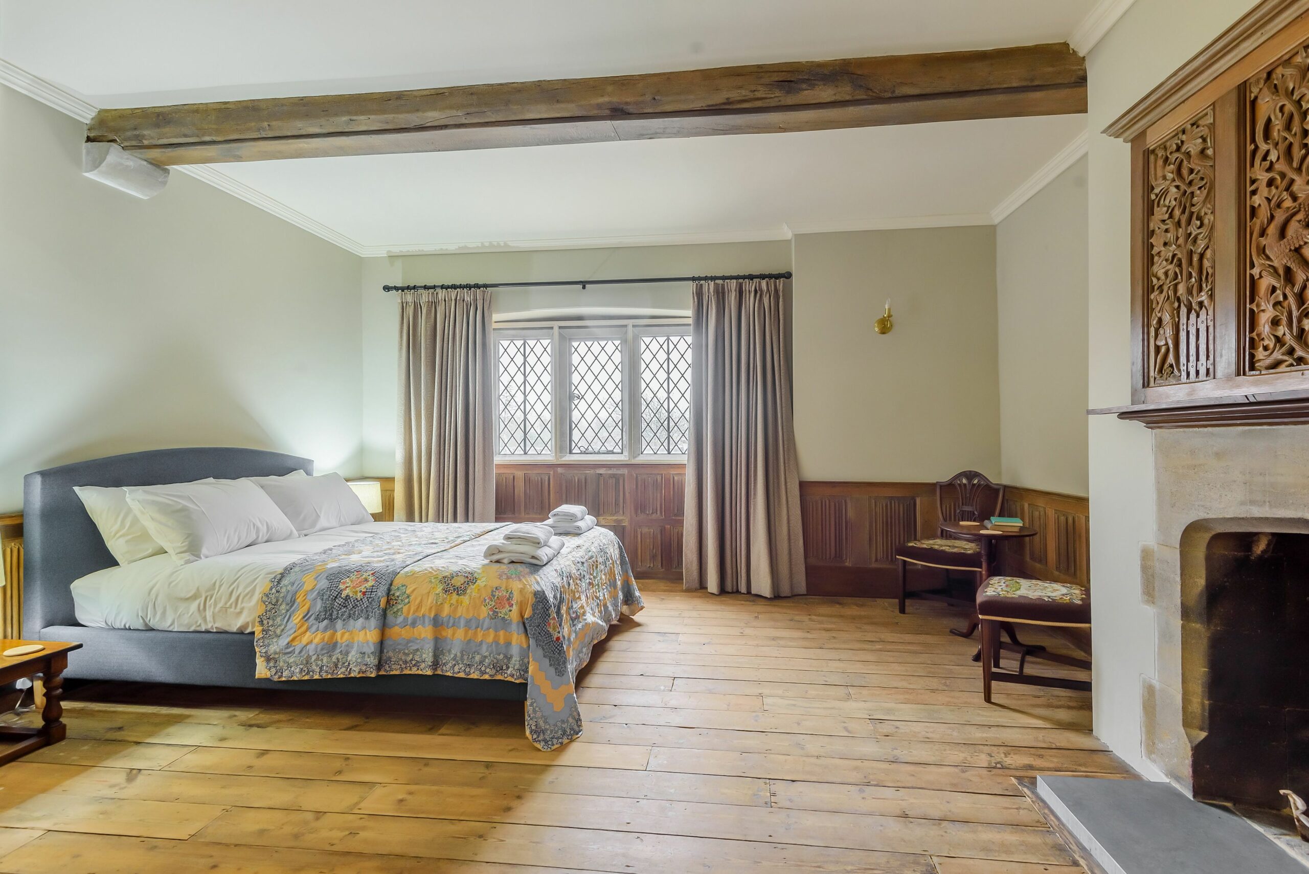 In 1921 George and Mary Cochrane, the owners of the Athelhampton (1920 – 1930), have a new wing added to Athelhampton. This elegant accommodation over three floors added rooms for guests and extended family. In 2021, after a century of use, the whole wing was sympathetically refurbished. Today in combination with the East wing, the private accommodation at Athelhampton is available for hire, ideal for 8 to 14 persons, in 7 en-suite bedrooms, with an additional sofa-bed room. The private accommodation is separated from the Tudor visitor attraction of the house.