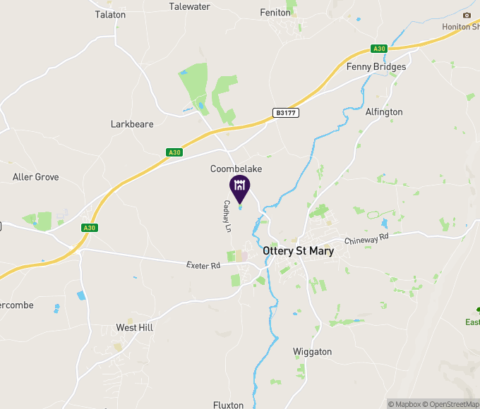 1 mile north west of Ottery St Mary. From the west take the A30 and exit at Pattesons cross and follow signs for Fairmile and Cadhay. From the east exit the A30 at Iron Bridge, the first exit after Honiton, and follow signs as above.