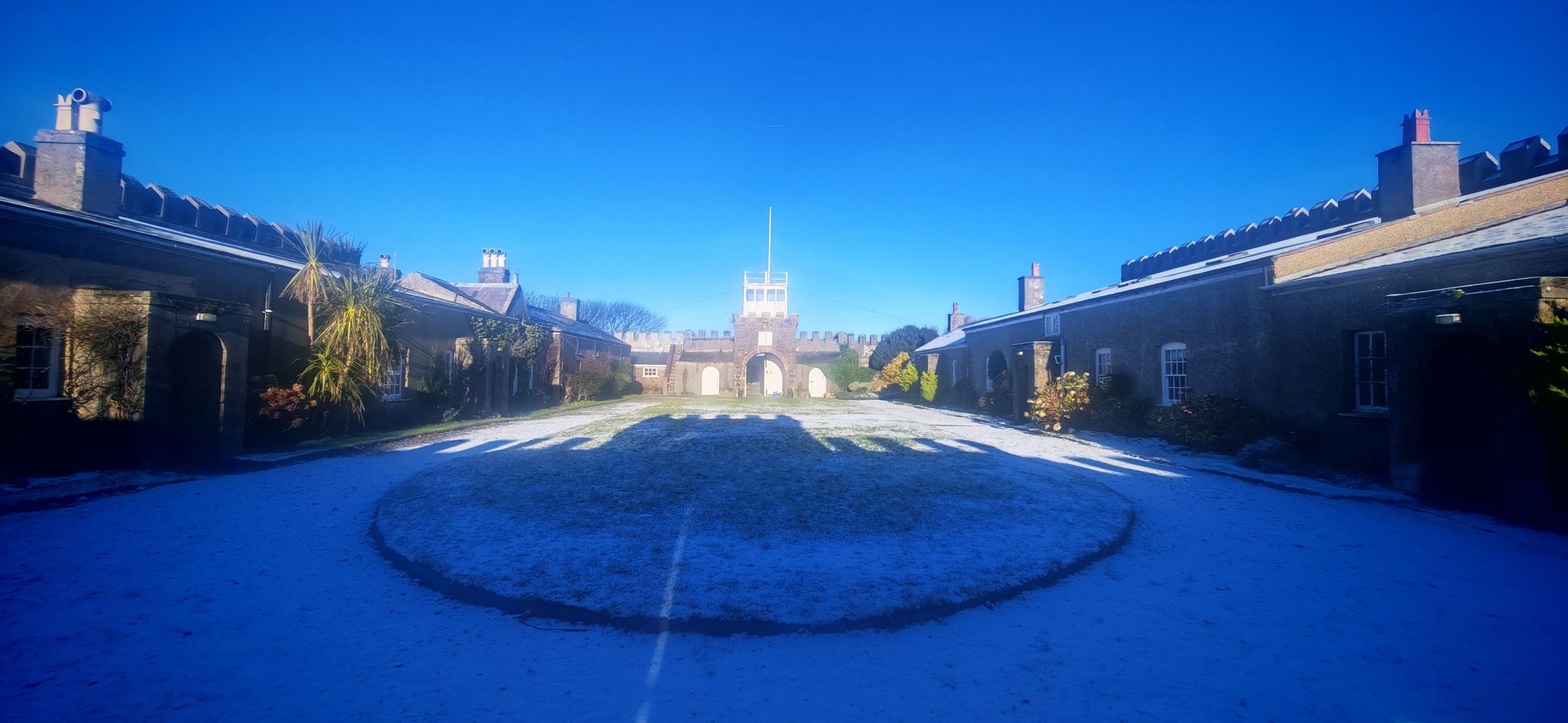 - The courtyard, where visitors will hear about the history of the buildings, which were built originally as barracks for Lord Newborough’s private garrison, and about the weighing room and the powder room where the black powder, ie gunpowder, was kept, and the unusual sundial which is set onto the tower wall.