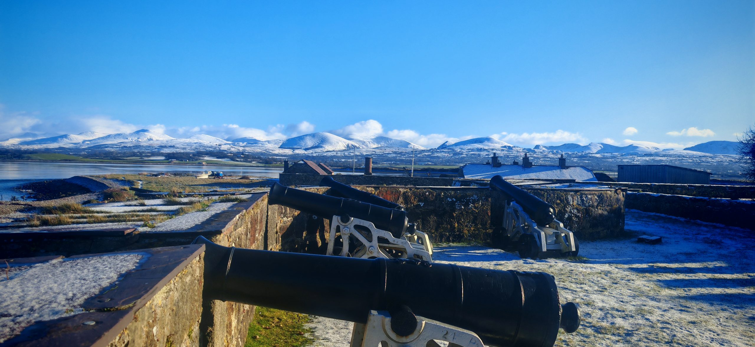 - A narrow postern entrance which cuts through the very wide outer wall and connects the fort to ‘the green’, where three more cannon, restored by the Anglesey Hussars, face towards the Strait. Two of these are fired by the Hussars on special occasions.