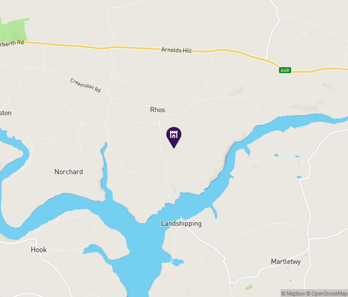 Located approximately 4 miles east of Haverfordwest, along the A40 road. The castle is approximately 2 miles south of the A40.