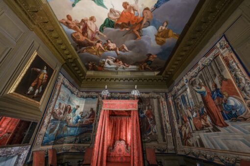 The State Rooms at Boughton House were originally built to impress the King and Queen, William and Mary, by showing them the contemporary style and tastes of the French Court. This included the magnificently painted ceilings by Louis Chéron, a celebrated French history painter and book illustrator.