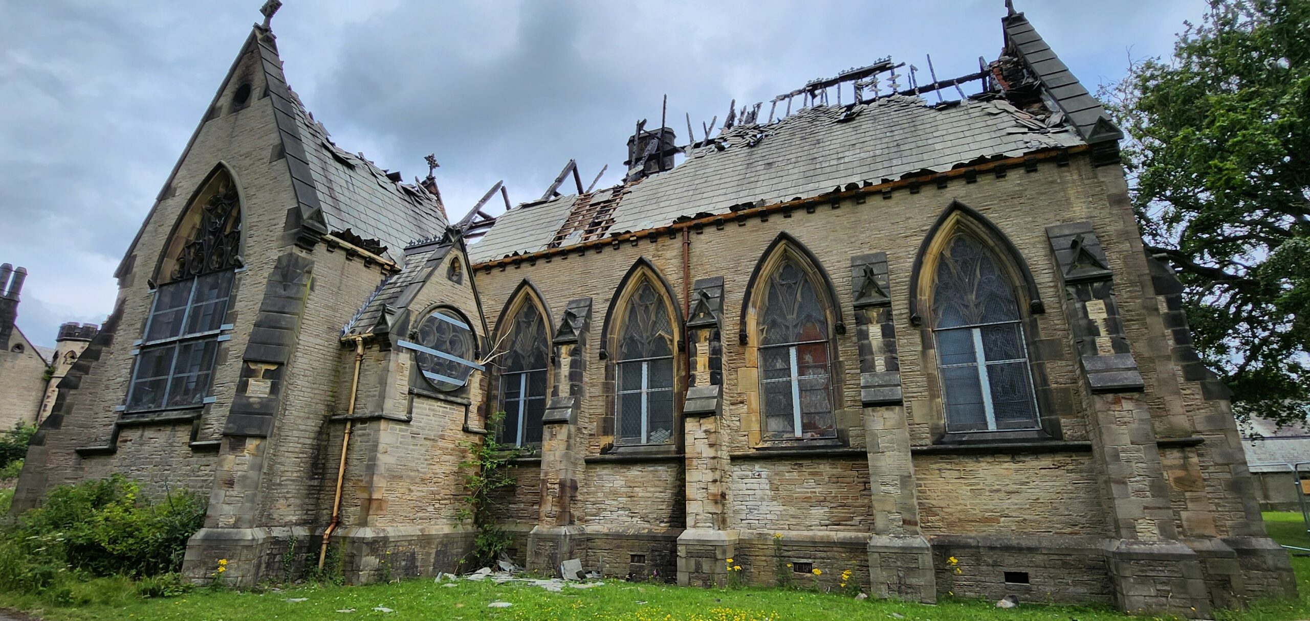 Since the arson attack in 2023, there has been further damage to the Junior House and St Aloysius Chapel, caused in part by the recent heavy storms. The £400,000 grant from Historic England will fund emergency repair works to the roofs and masonry of both buildings, as well as the erection of a temporary roof to prevent further damage to the decorative plasterwork inside the chapel.