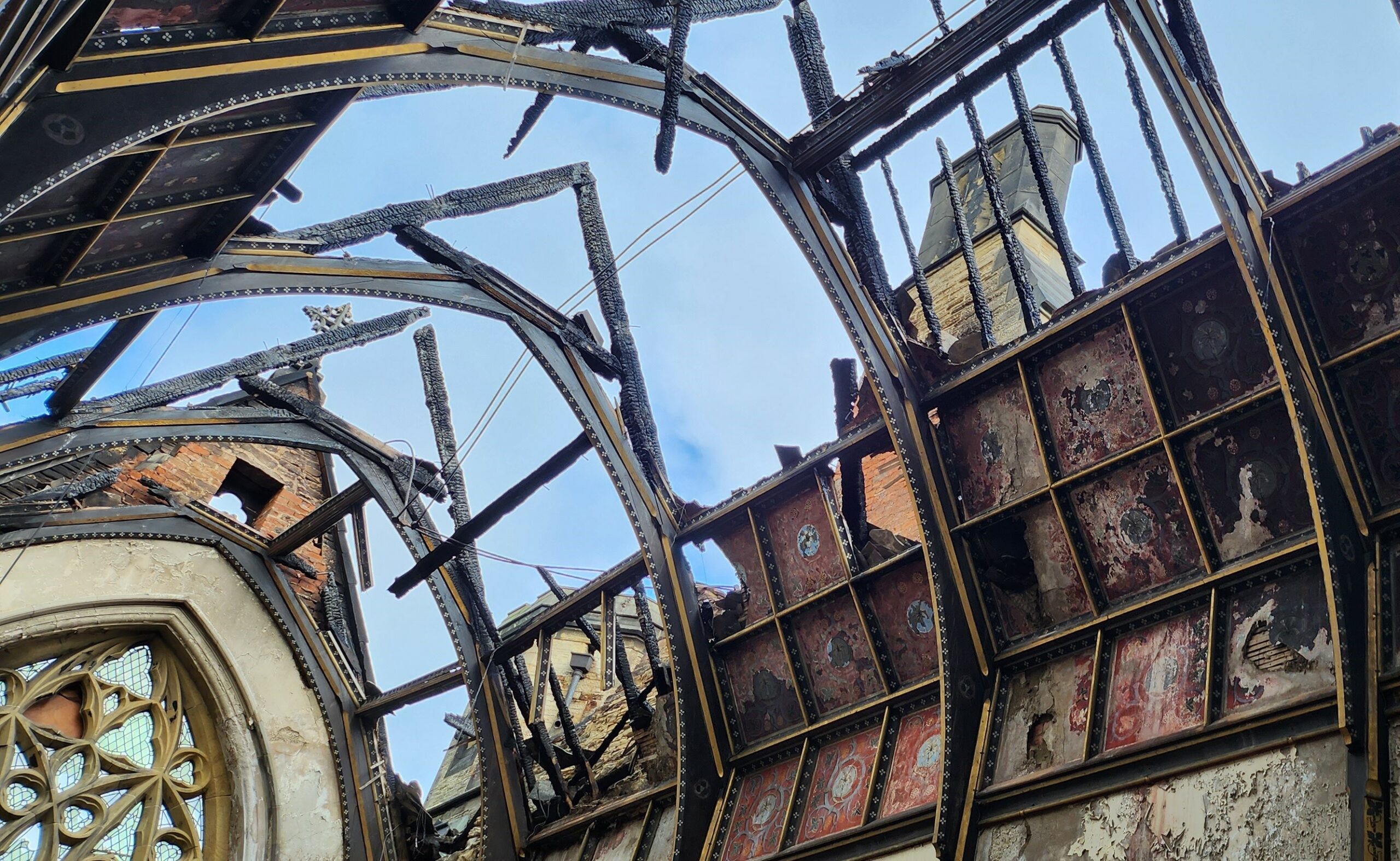 Scaffolding can then be erected to provide protection to the highly decorative chapel interior and allow the architects and engineers to inspect what is left. Designs for the reinstatement will then be drawn up and the whole cost of the restoration can be priced.