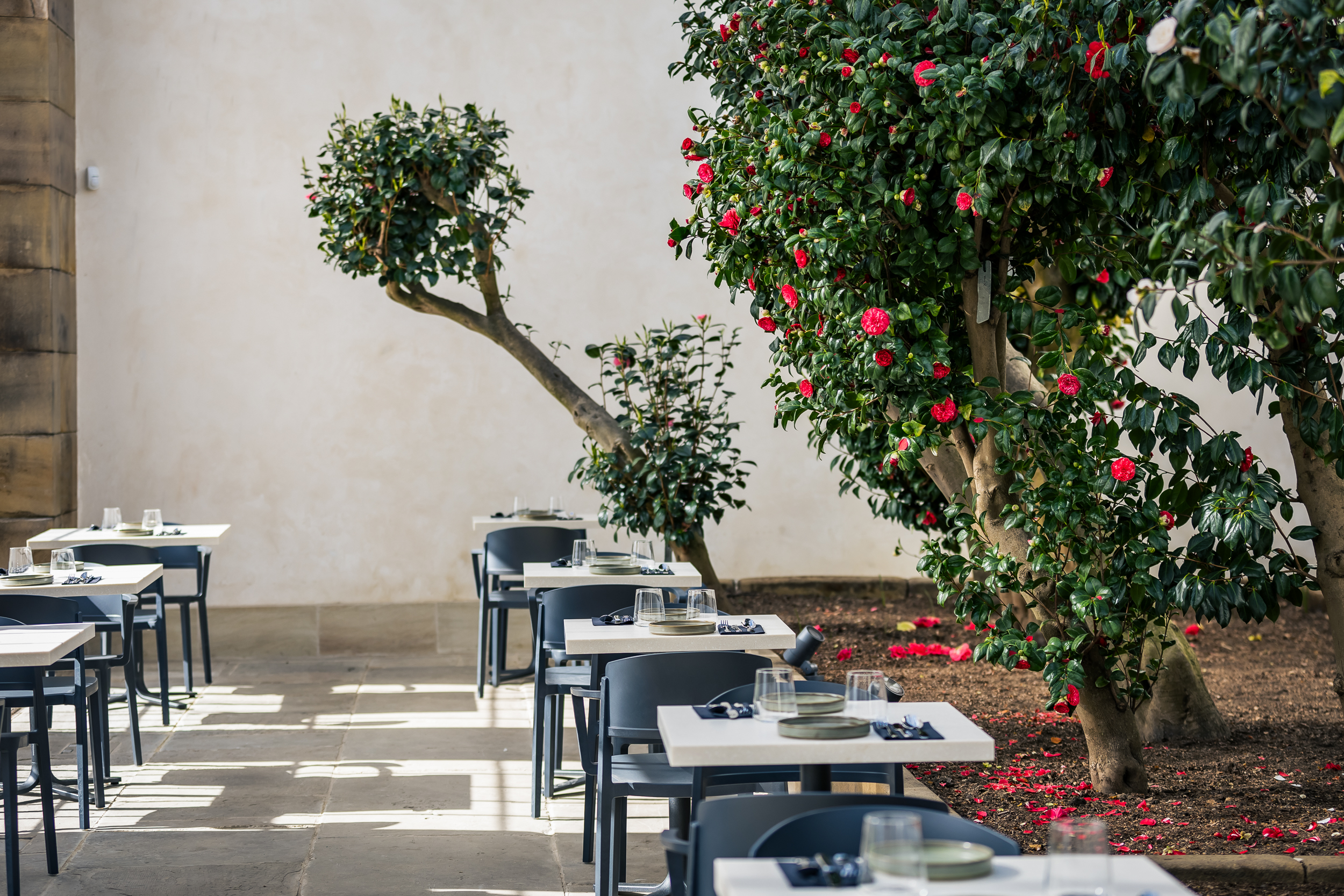 Numerous heritage conservation challenges, not least the protection of the historic camellias, were overcome. Wherever possible, original materials and features were retained – including some of the country’s largest Georgian sash windows. Energy-conserving methods introduced include carbon-neutral heating and a rainwater harvesting system, which irrigates the camellia plants and provides water for the WCs.