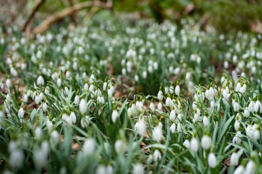 “Look out for snowflakes, Galanthus nivalis, the common snowdrop, and some more unique varieties including Galanthus nivalis viridapice with its distinctive green tips; Galanthus nivalis flore pleno, which has double white flowers; and Galanthus elwesii, a larger snowdrop also known as ‘greater snowdrop’. “